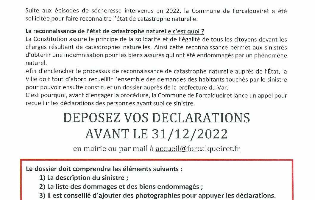 catnat_2022_demande reconnaissance_2022 11 24_appel aux declarations_A4 par admin1187 | Nov 25, 2022 | 0 commentaires Poster le commentaireVotre adresse e-mail ne sera pas publiée. Les champs obligatoires sont indiqués avec *Commentaire * Nom * E-mail * Site web Enregistrer mon nom, mon e-mail et mon site dans le navigateur pour mon prochain commentaire.
