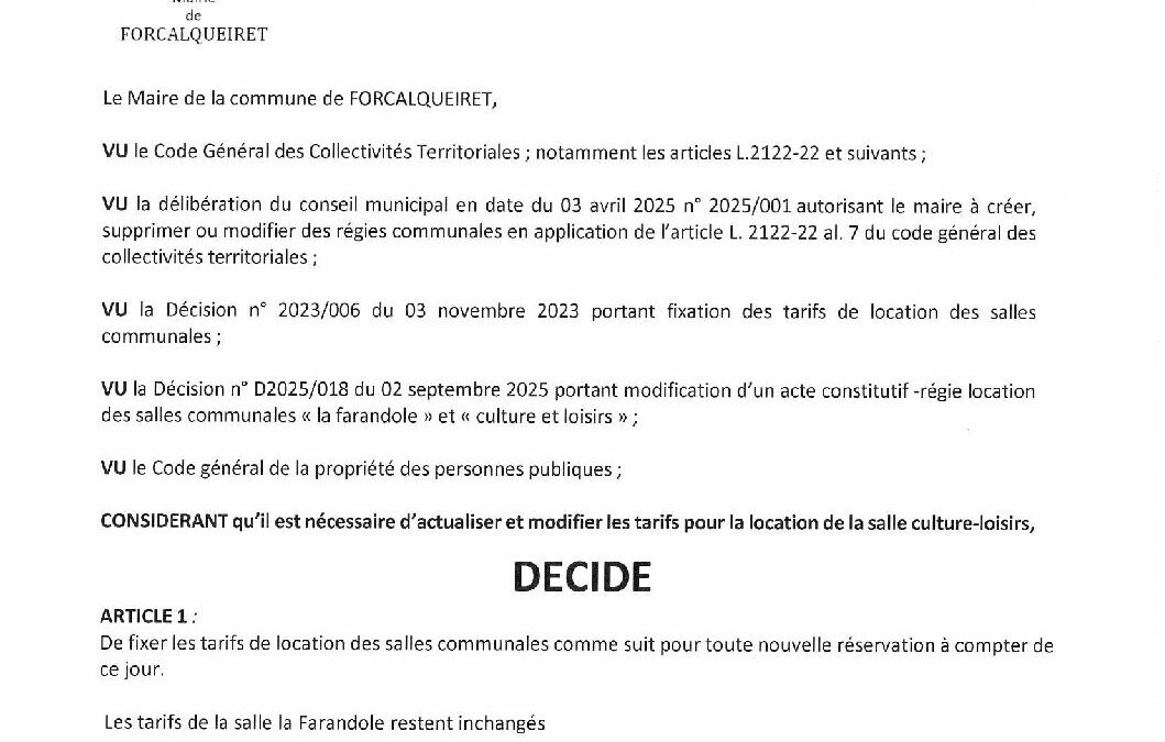 D2025-017 Tarifs location salles communales
